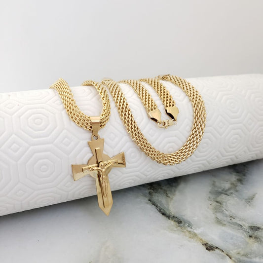 Cadena Tejido Chino 60cm-4mm de Grosor + Dije Cruz Gratis INRI + Envío Gratis