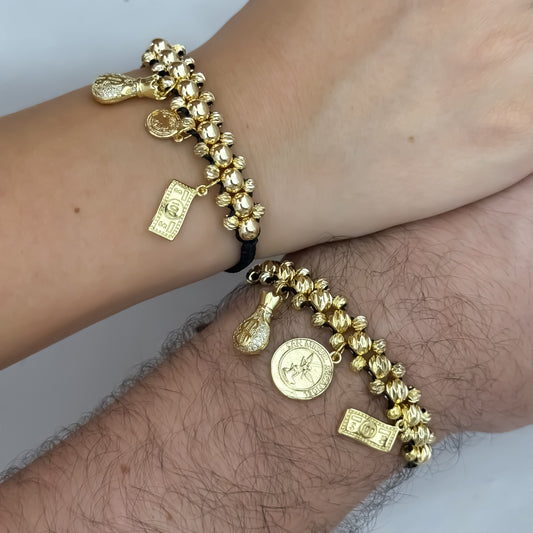 Promoción de 2 Pulseras Para Parejas Doble Carril de Abundancia y Protección en Balin Liso de 4mm y Italiano en Oro Laminado 18k con Garantía de por vida