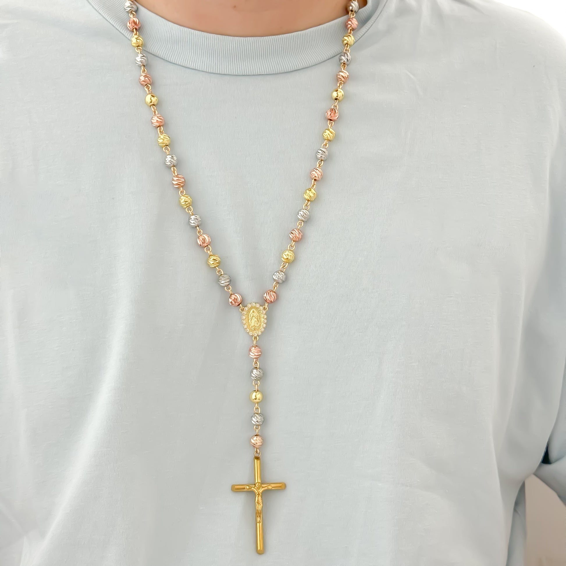 CAMANDULA VIRGEN DE GUADALUPE PARA CABALLERO EN BALIN ITALIANO 6MM DE 3 OROS EN ORO LAMINADO 18K