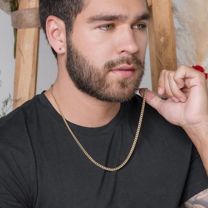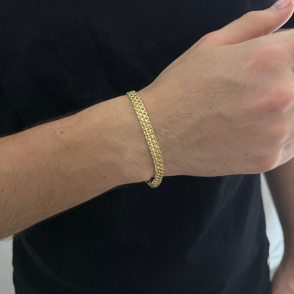 Cadena Tejido Gucci de Hombre de 60cm de 4mm + Cruz Cristo Madero + Pulseras de 3 Carriles Italiano y liso en Oro Laminado 18k